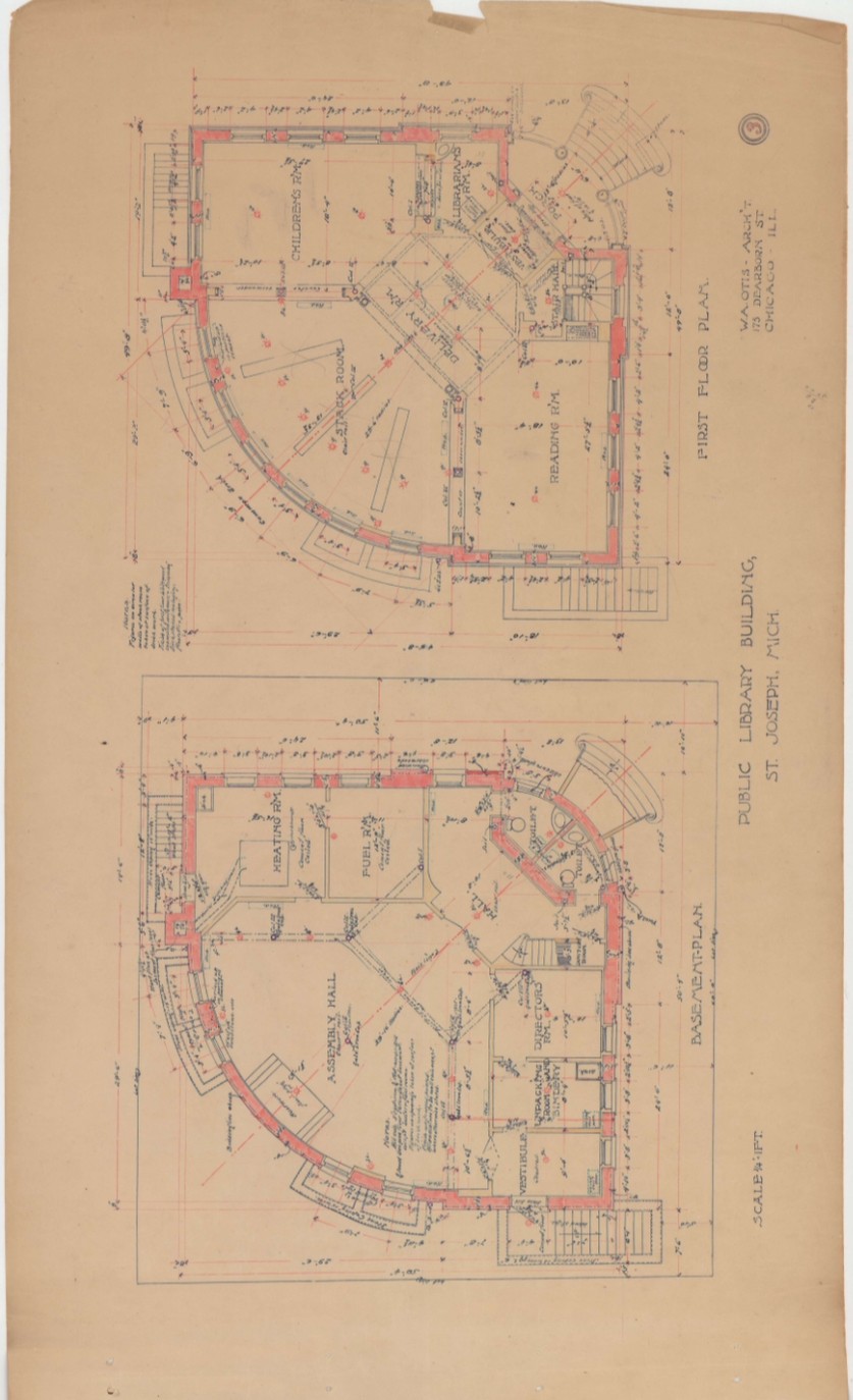 The blueprint of a dream-preserved. These are the original plans that shaped the original St. Joseph Library constructed with funds donated by Andrew Carnegie, and now reimagined as our historic boutique hotel.